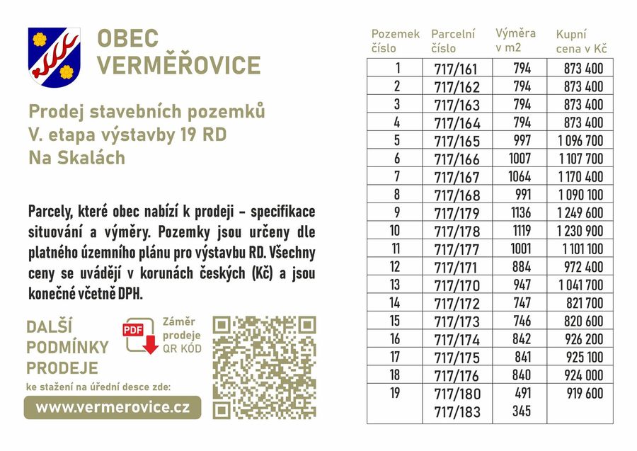 Úvod > Dění v obci > Aktuality > Obec Verměřovice nabízí k prodeji parcely pro stavby rodinných domů