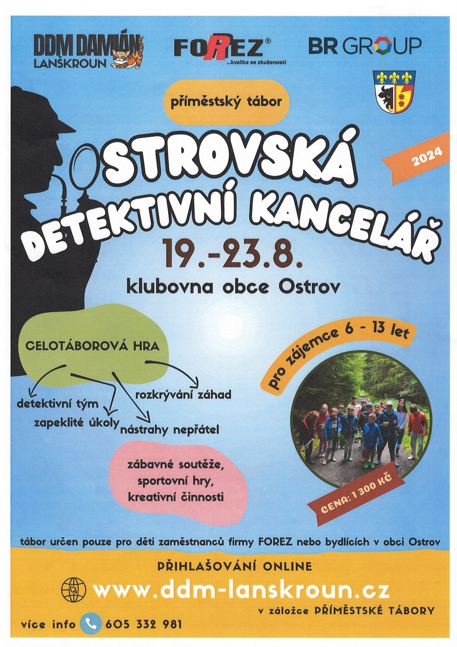 Firma FOREZ s.r.o. pořádá i v letošním roce příměstský tábor pro děti svých zaměstnanců a pro děti bydlící v Ostrově. Již nyní je možné se přihlásit.