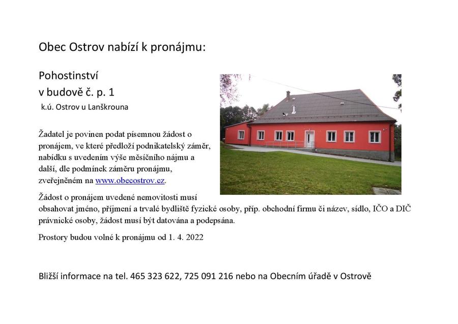 Úvod > Dění v obci > Aktuality > Pronájem pohostinství