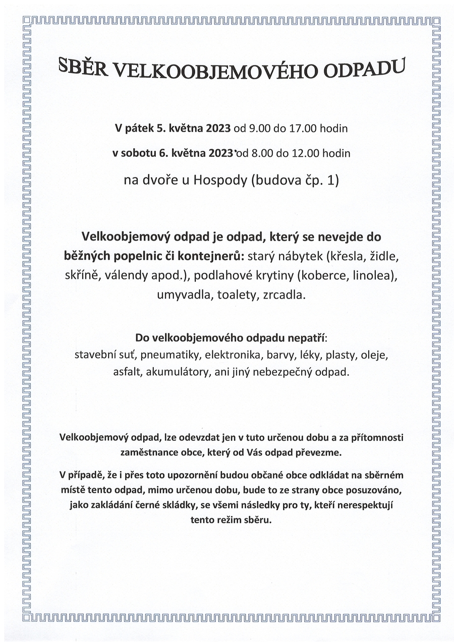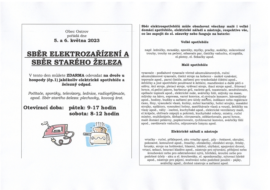 Úvod > Dění v obci > Aktuality > sběr velkoobjemového odpadu, elektrozařízení, starého železa a kovu